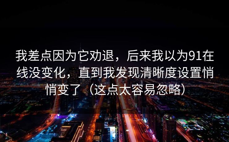 如果你和我一样喜欢在下班后随手打开视频放松,遇到画面模糊、画质突然降级那种体验,会烦躁到想立刻换平台。前段时间我也差点被91在线劝退,直到花了点时间排查,才发现并不是平台突然“变坏”,而是清晰度设置悄悄被改了——很多人容易忽略的地方。把我的排查流程和解决办法整理出来,给大家省时间。